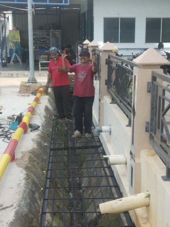 Untuk Pembuatan Stoper Parkir Mobil dan Teralis penutup sepanjang tutup parit depan Masjid Namirah, DKM Namirah mempercayakan penyelesaian pekerjaan kepada Pak ADI HASAN TRALIS (Pak Adi Nazwar) spesialis segala jenis pembuatan TRALIS baik bahan besi dan Stainless steel.