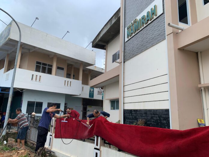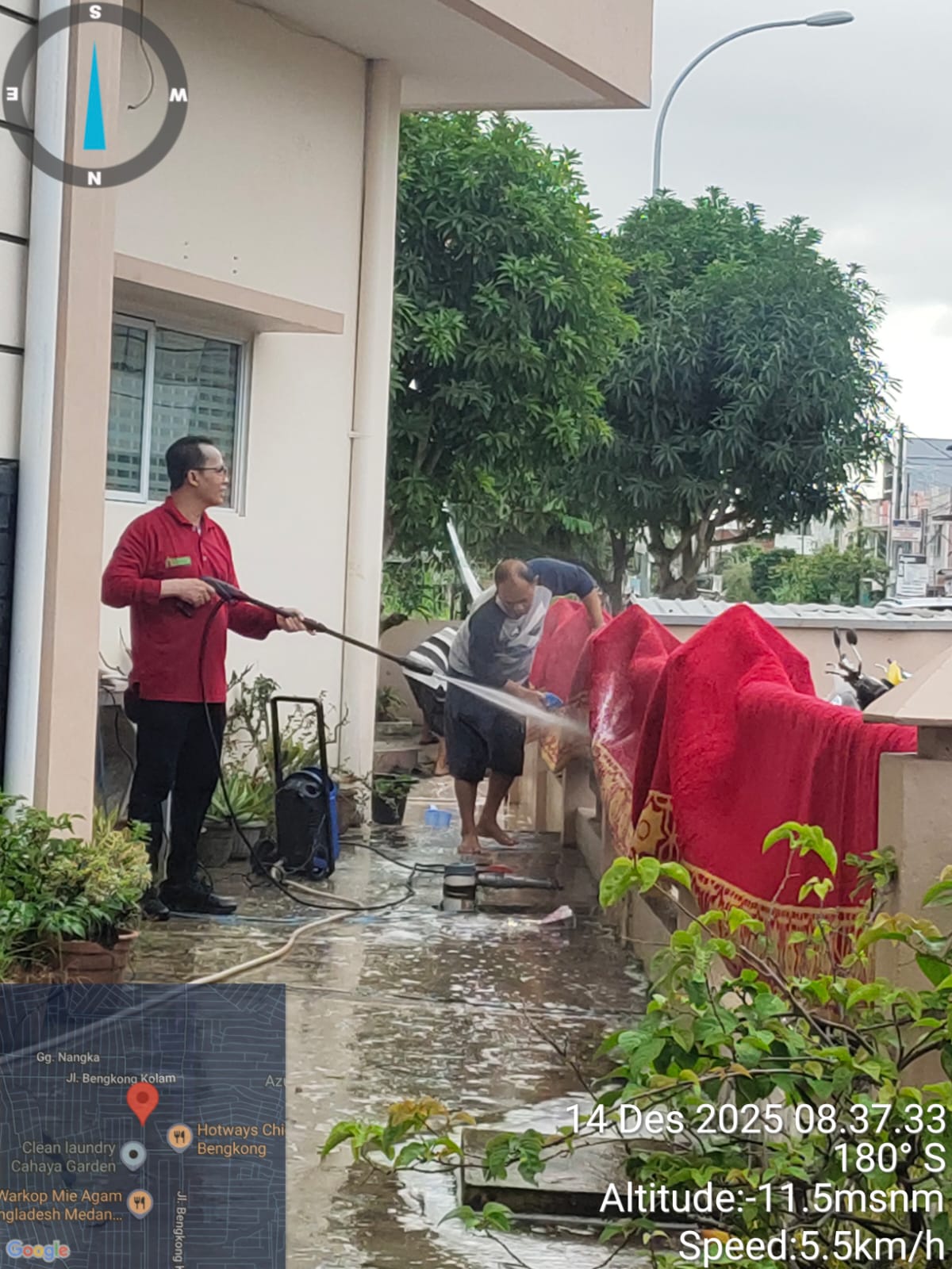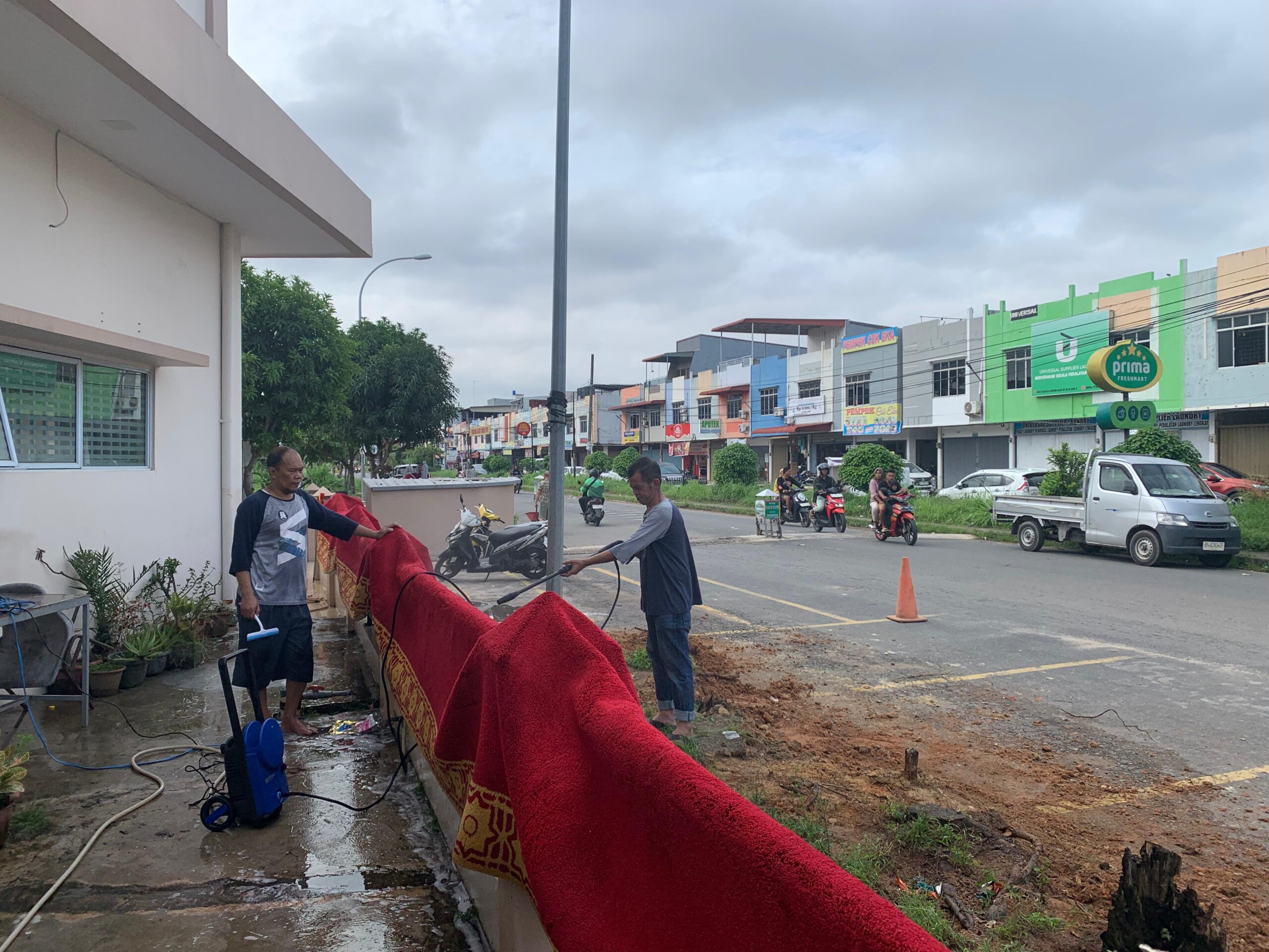 ”Alhamdulillah, gotong royong membersihkan karpet, halaman masjid, halaman parkir kendaraan, membersihkan kaca masjid, memotong ranting berjalan lancar Ribuan Terima kasih kami sampaikan kepada jamaah dan masyarakat yang telah bergabung untuk bersih-bersih, semoga menjadi ladang amal ibadah buat kita semua, Amiin Yaa Rabbal alamiin,” tutur Ketua RW 16 Cahaya Garden Bapak Wawan Purnawan, S.E., sekaligus Ketua Yayasan Namirah Bengkong Sadai.