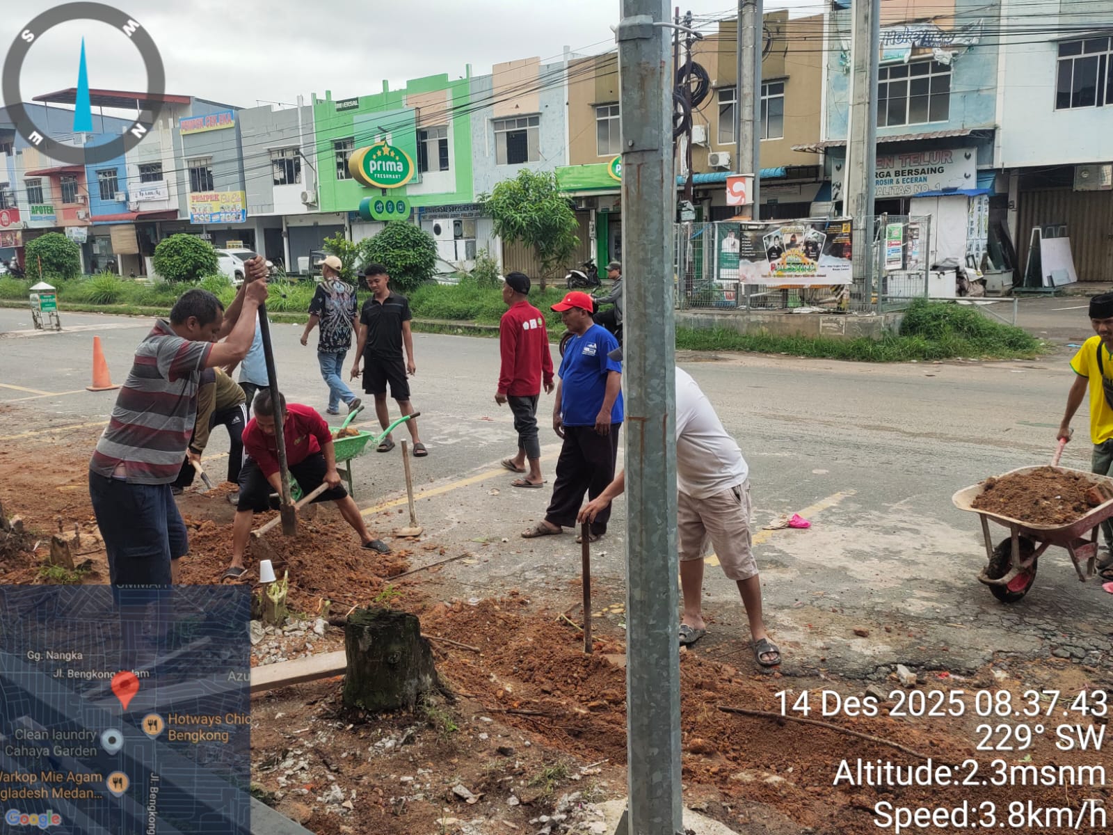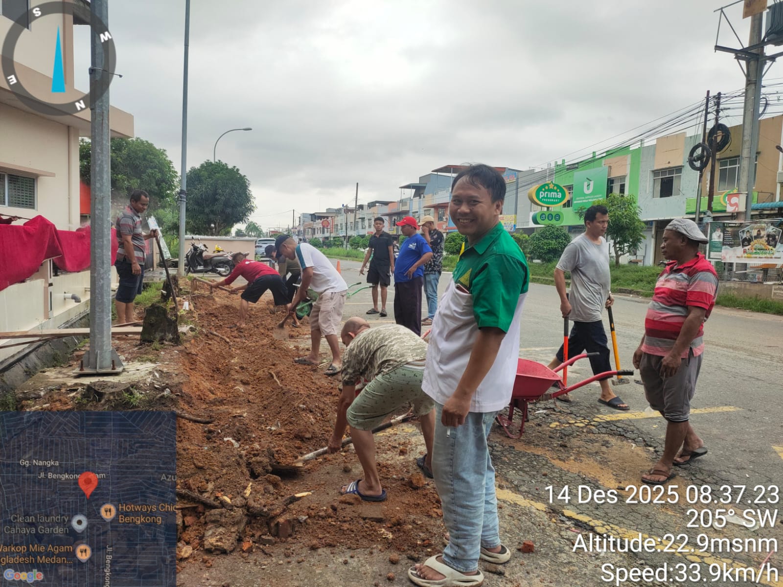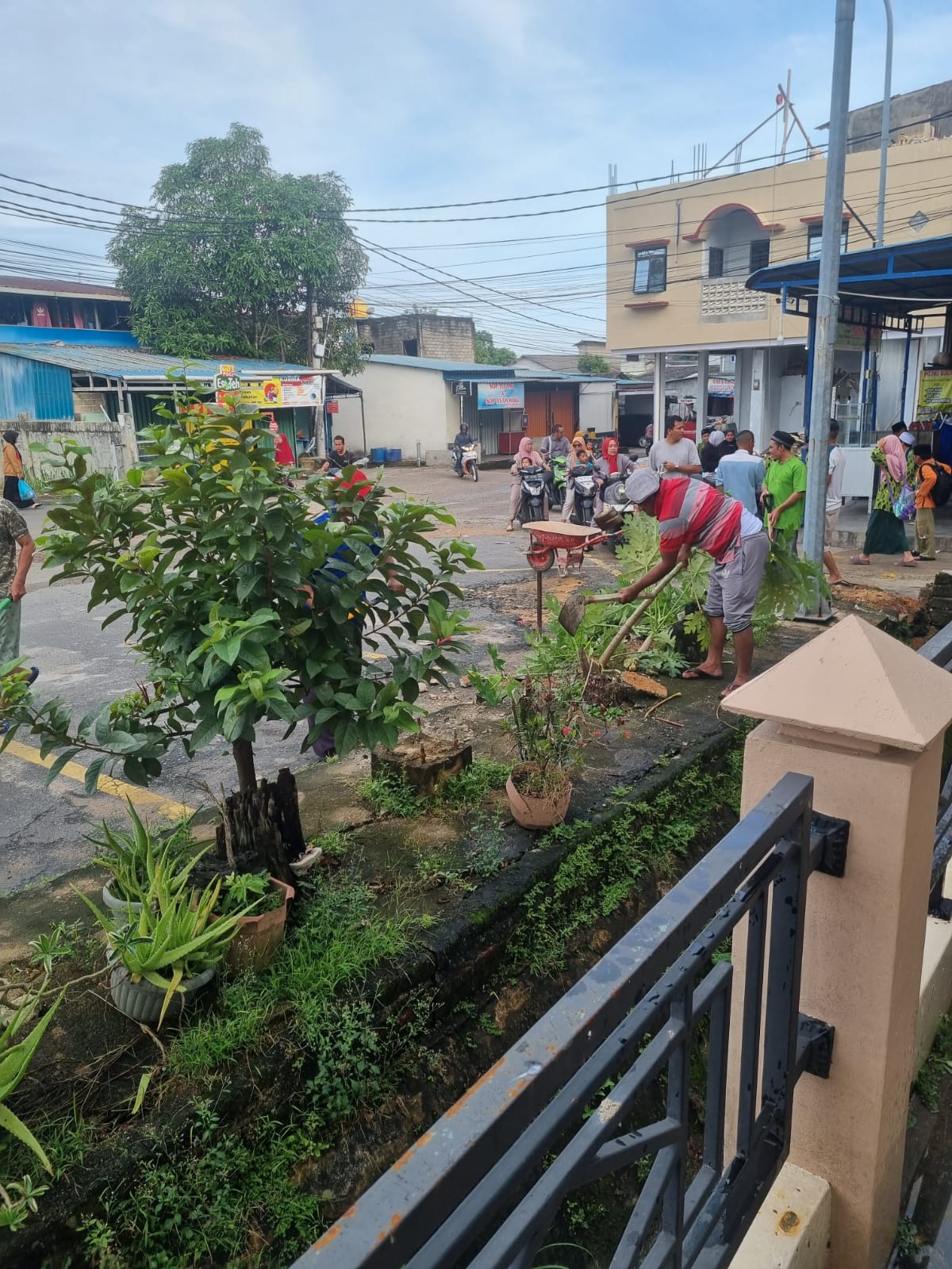 BENGKONG- Jamaah Masjid Namirah Cahaya Garden Bengkong dan warga sekitar masjid menggelar gorong royong (goro) Massal membongkar taman depan masjid untuk menimbun halaman parkir sebelah Namirah pada hari Minggu (14/12/2025).
