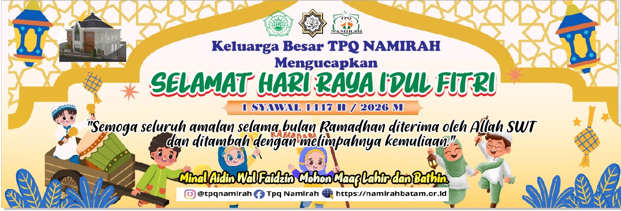 Mari bersama sama kita hadiri Sholat I’dul Fitri 1447H tanggal 1 Syawal 1447H dengan menyiapkan infaq terbaik untuk Masjid Namirah yang sama sama kita cintai, semoga kegiatan ini mendapat Ridho Allah SWT, aamiiin.