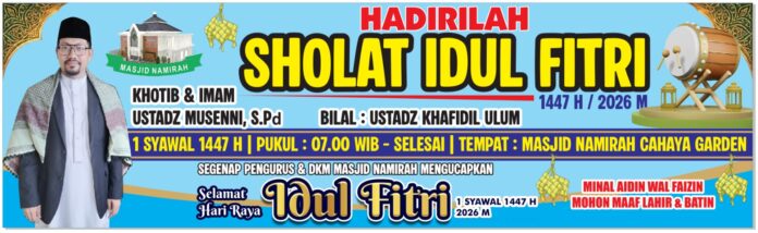 Mari kita hadiri Beramai Ramai Sholat Idul Fitri 1447H Masjid Namirah Cahaya Garden Pada Tanggal 1 Syawal 1447H