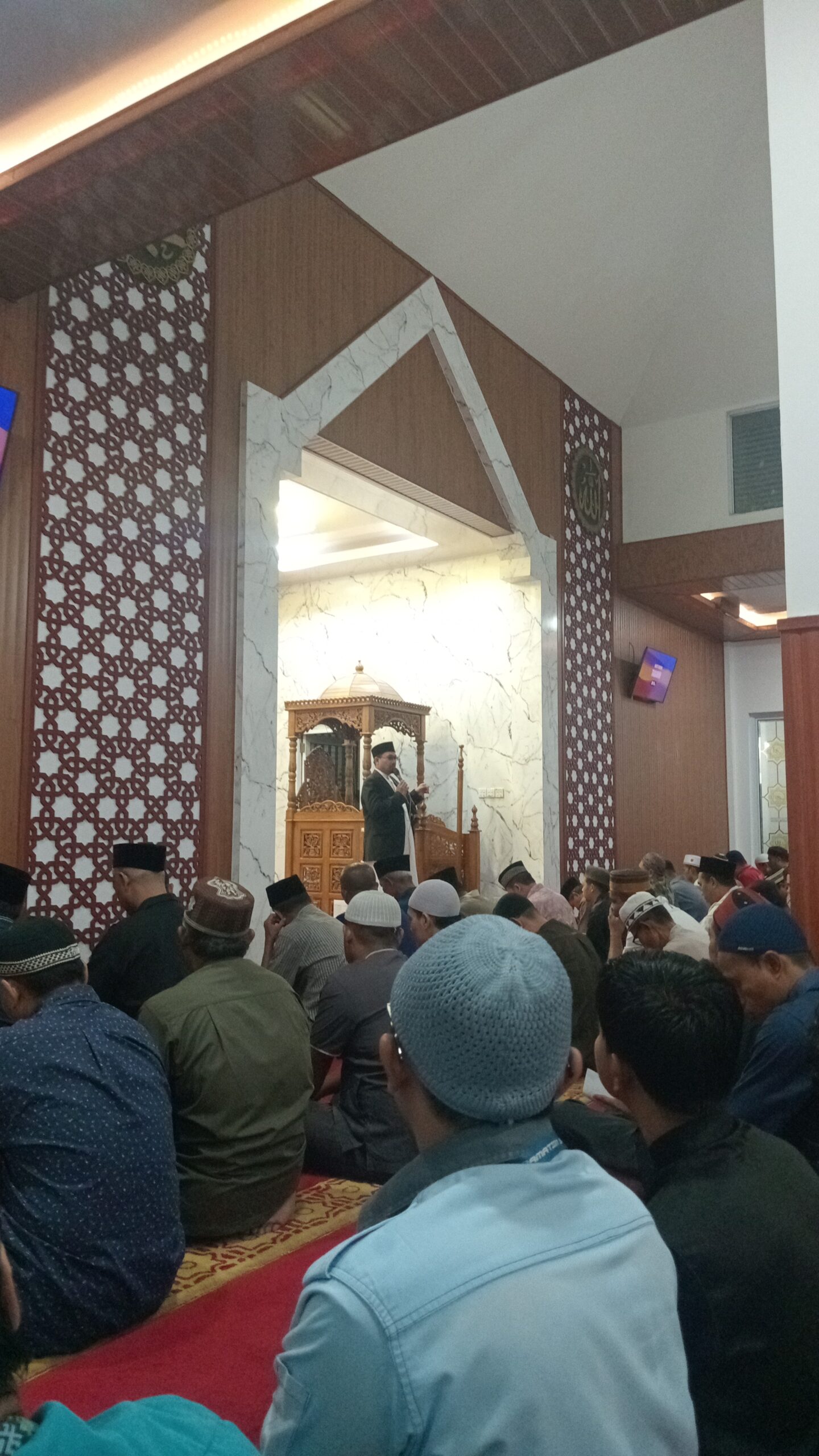 Acara dilanjutkan dengan Kultum Ramadhan yang disampaikan oleh Imam Utama Masjid Namirah, Kyai Musenni, S.Pd., sekaligus membimbing jamaah sholat Tarawih untuk bersama sama berniat Puasa 1 bulan Ramadhan penuh.