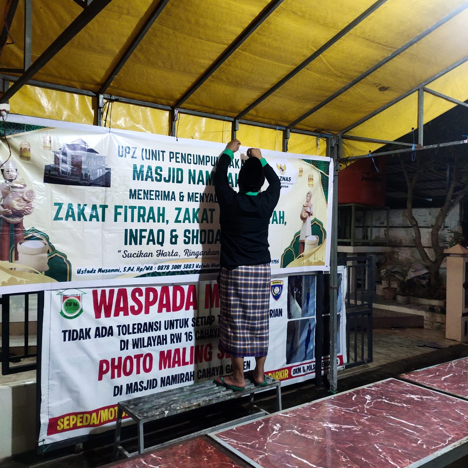 āAtas Nama Pengurus Yayasan dan DKM Masjid Namirah kami menyampaikan permohonan maaf lahir dan bathin kepada seluruh jamaah apabila selama 1 tahun terakhir kami ada khilaf dan salah mohon untuk dimaafkan. Panitia pembangunan Masjid Namirah juga masih membuka Lelang Sunda Plafon dan Pemasangan Keramik Teras keliling lt 2, untuk itu kami membuka donasi seikhlasnya untuk pembangunan Masjid Namirah untuk lantai 2,ā bila ada jamaah yang memiliki kelebihan rejeki dapat menghubungi Panitia Pembangunan, tambahnya.
