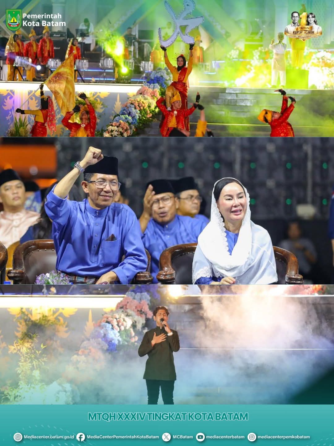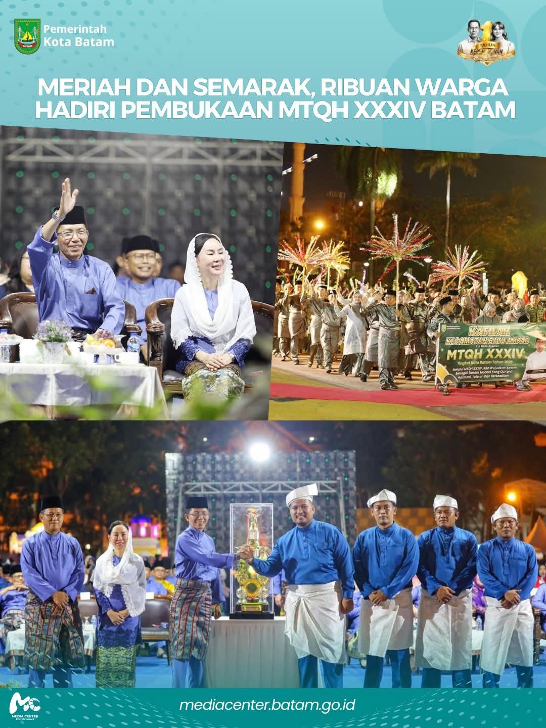 Penampilan berbagai seniman dan musisi turut memeriahkan malam pembukaan MTQH XXXIV tingkat Kota Batam. Pembukaan Musabaqah Tilawatil Qur’an dan Hadis (MTQH) XXXIV Tingkat Kota Batam Tahun 2026 berlangsung meriah di Dataran Engku Putri, Batam Centre, Jumat (10/4) malam. Ribuan masyarakat dari berbagai penjuru kota memadati lokasi acara, menciptakan suasana semarak penuh syiar Islam.