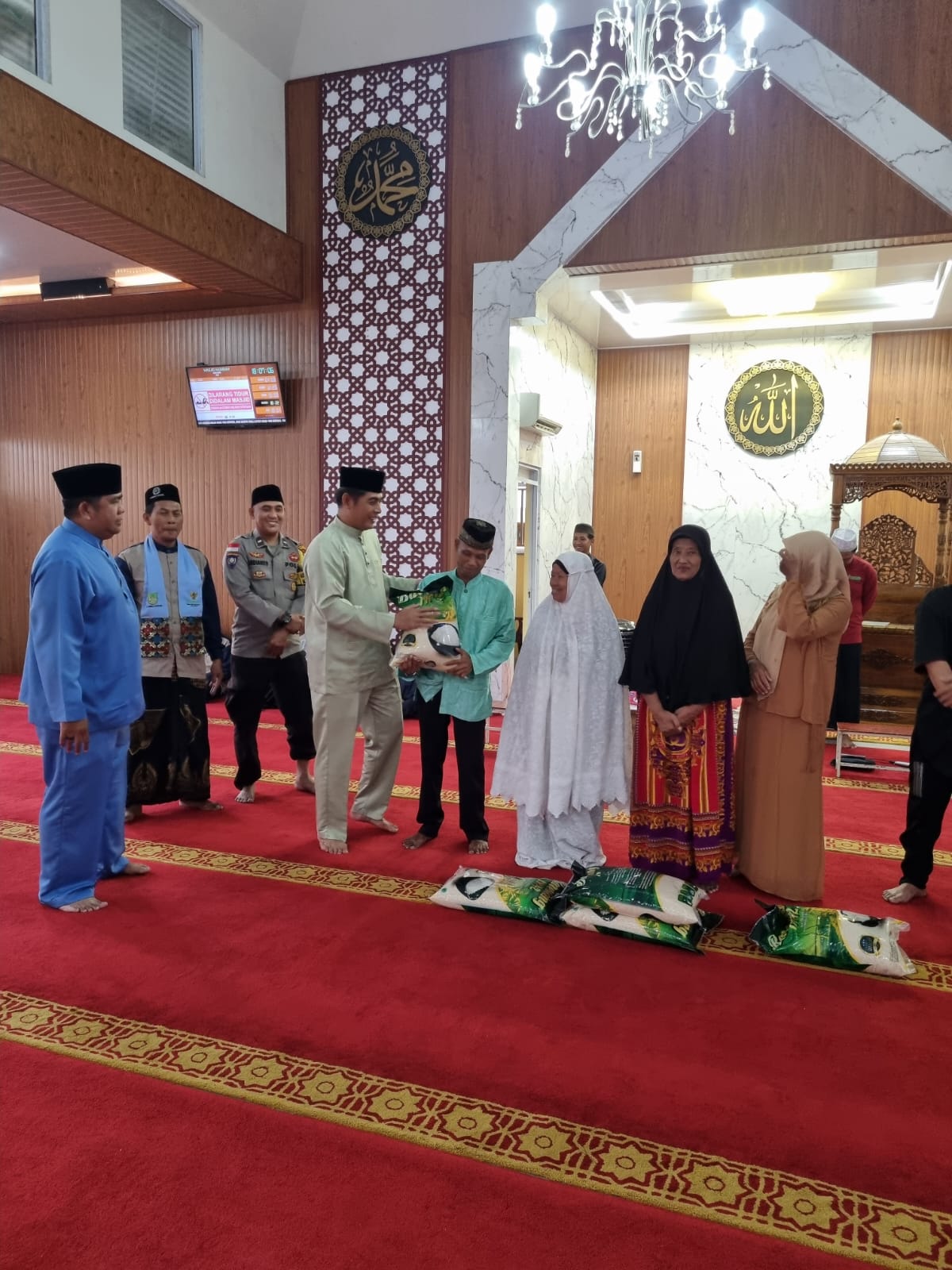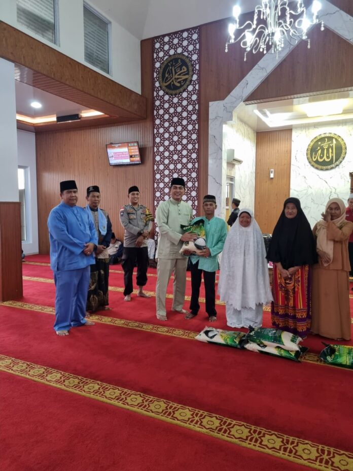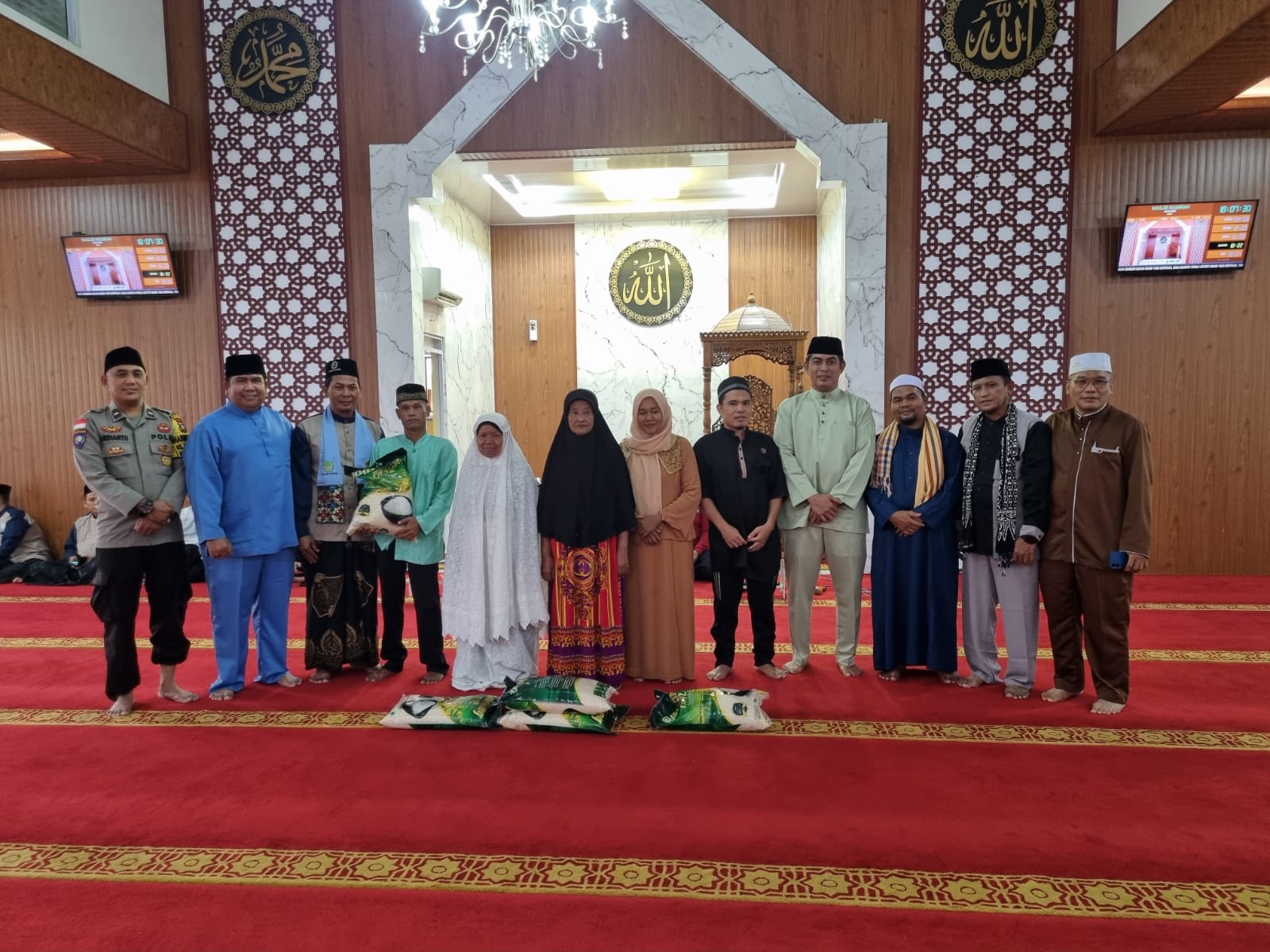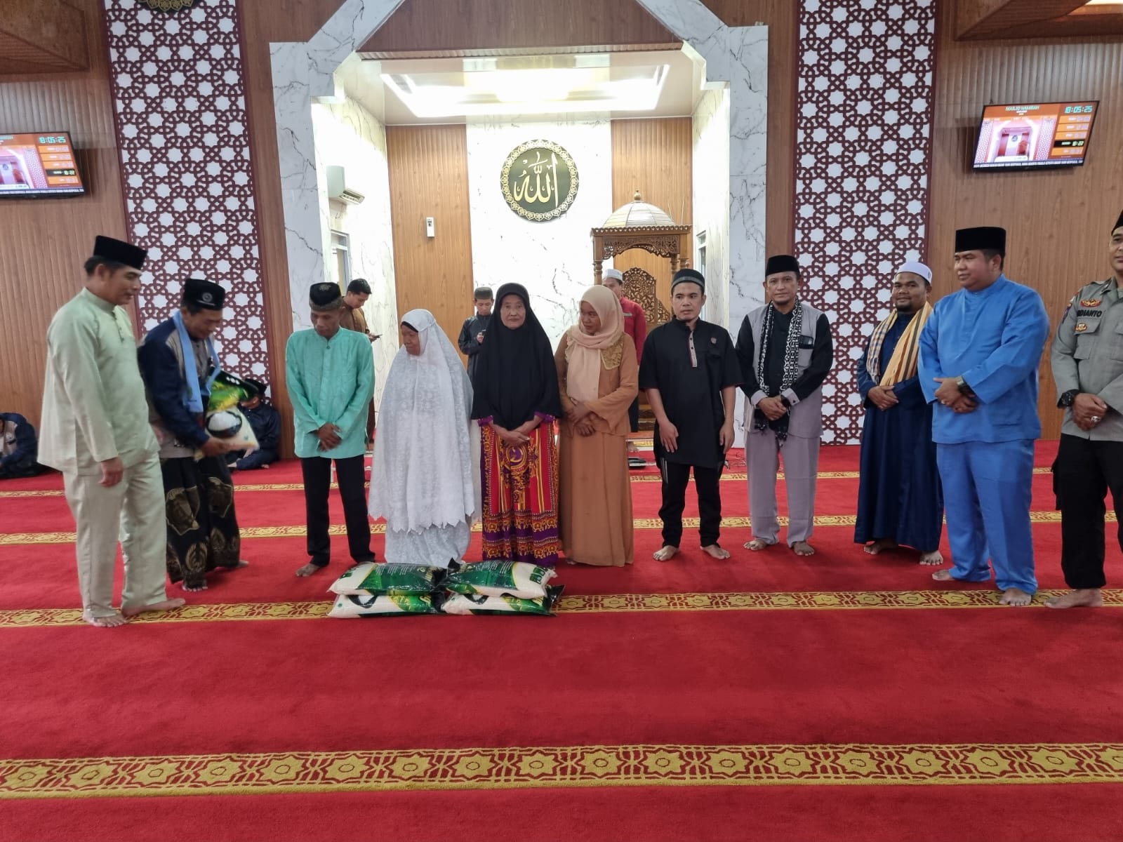 Dalam kesempatan tersebut, PMB Kecamatan Bengkong juga menyerahkan santunan berupa beras kepada para duafa sebagai bentuk kepedulian sosial di bulan suci Ramadan.