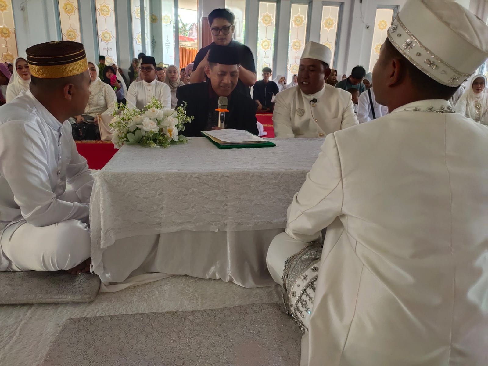 Hadir dalam prosesi Akad Nikah tersebut kedua belah pihak keluarga dari calon mempelai laki laki dan calon mempelai perempuan, Imam Masjid, Pembina dan Pengurus Yayayan Namirah, Pengurus DKM Namirah, Pengurus TPQ Namirah dan Jamaah Masjid Namirah.